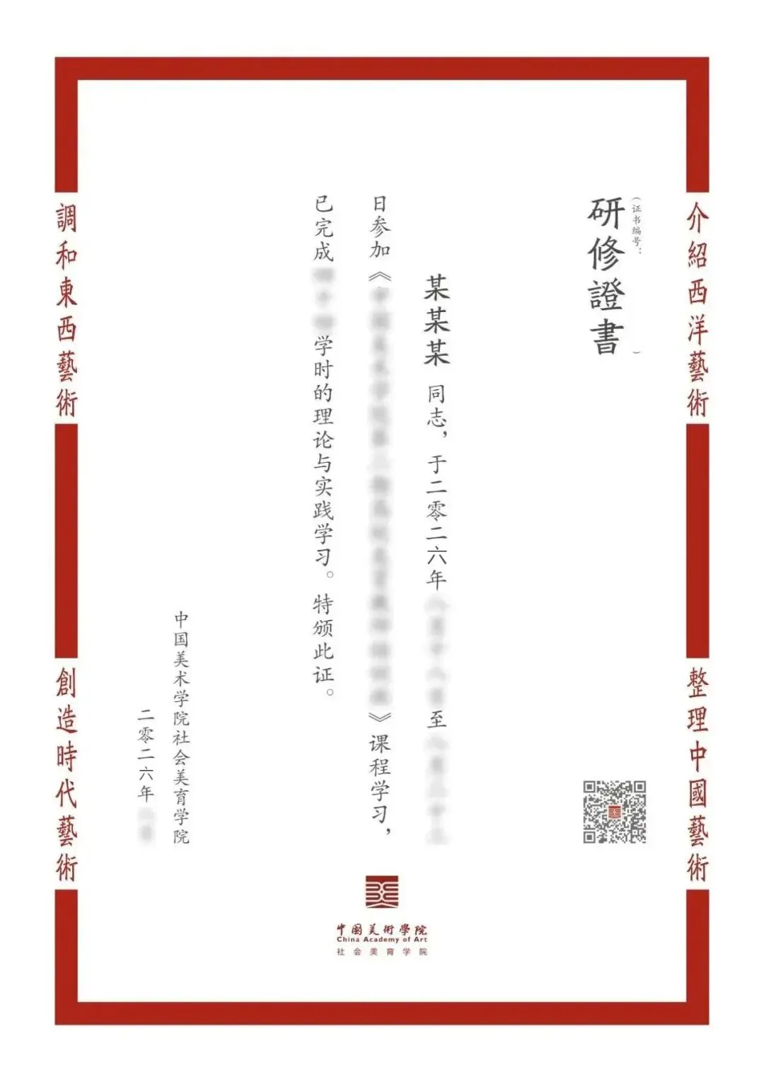 学习结束颁发中国美术学院人工智能(AIGC)"AI+创作"高级实操研修证书