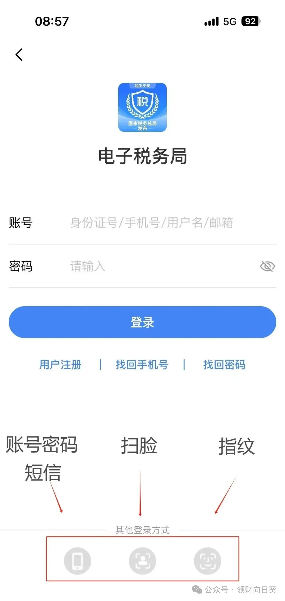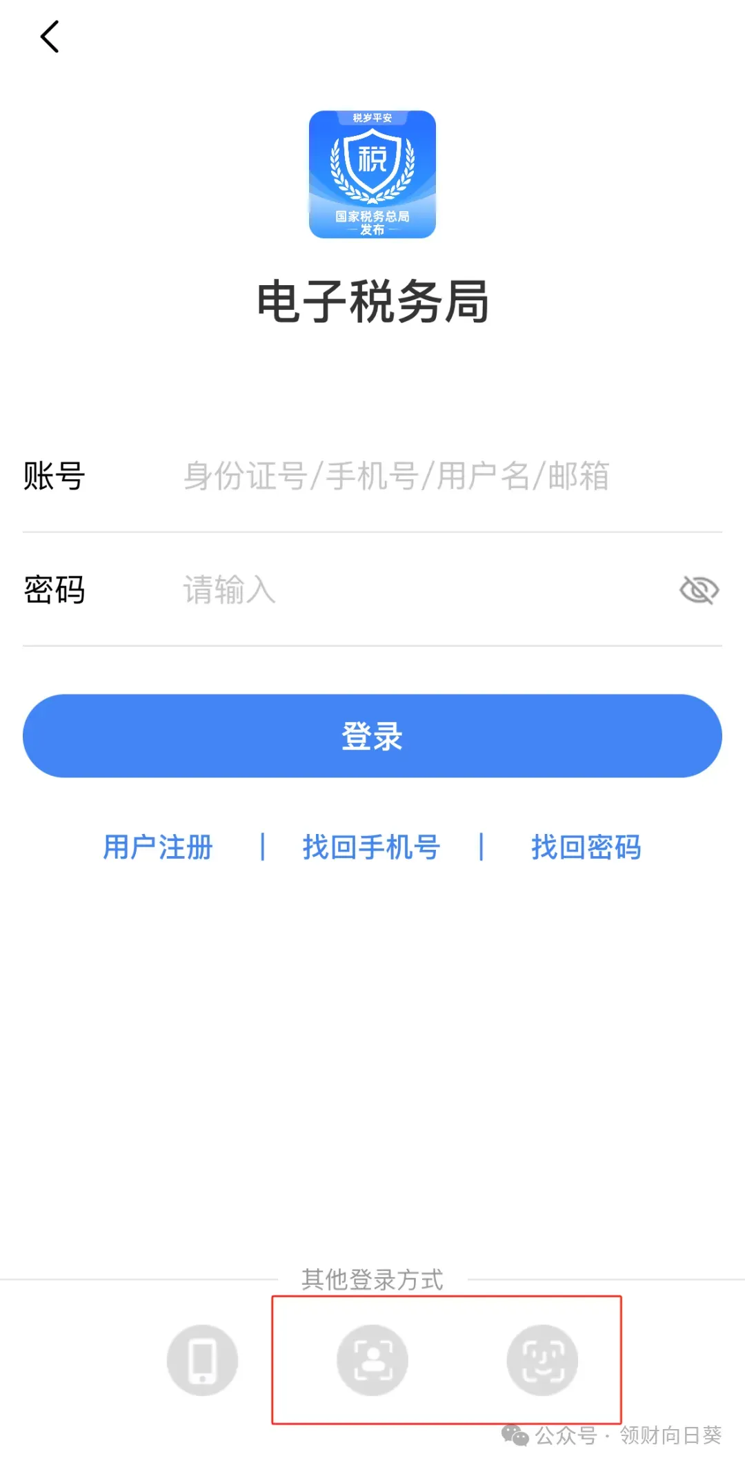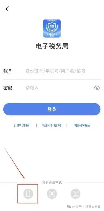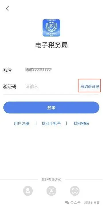 3、短信登录:在登录页面左下角选择手机图标,进入短信登录界面。在登录框中输入证件号码(或手机号码、用户名、邮箱),点击【获取验证码】,输入验证码后即可完成用户登录。
