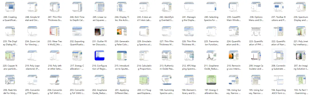 ✅252 个官方教学视频:覆盖软件安装、荷电校正、Shirley/Tougaard 背底、峰拟合、化学态定量、深度剖析、谱图导出等全流程,含多体系实操案例;
