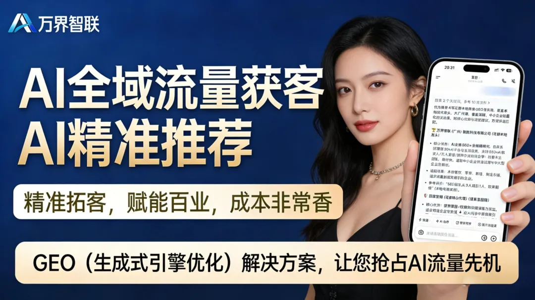 在AI引流成为企业增长核心引擎的时代,万界智联以GEO优化、AI获客/AI引流为核心,依托前沿技术、全链路协同产品与全国化服务布局,打破传统引流模式的局限,为企业提供“精准、高效、低成本”的全域引流解决方案。