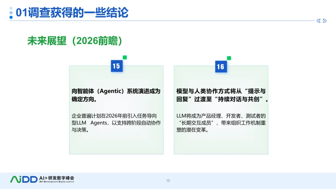 当前最大痛点集中在高质量业务数据匮乏、安全隐私合规风险、AI幻觉不可控、专业人才短缺与算力成本偏高。到2026年,行业核心演进方向明确,LLM Agents智能体将全面普及,人机协作模式从单次提示回复转向持续共创,企业将加速构建AI原生研发体系,推动研发流程实现更深度的智能自治。