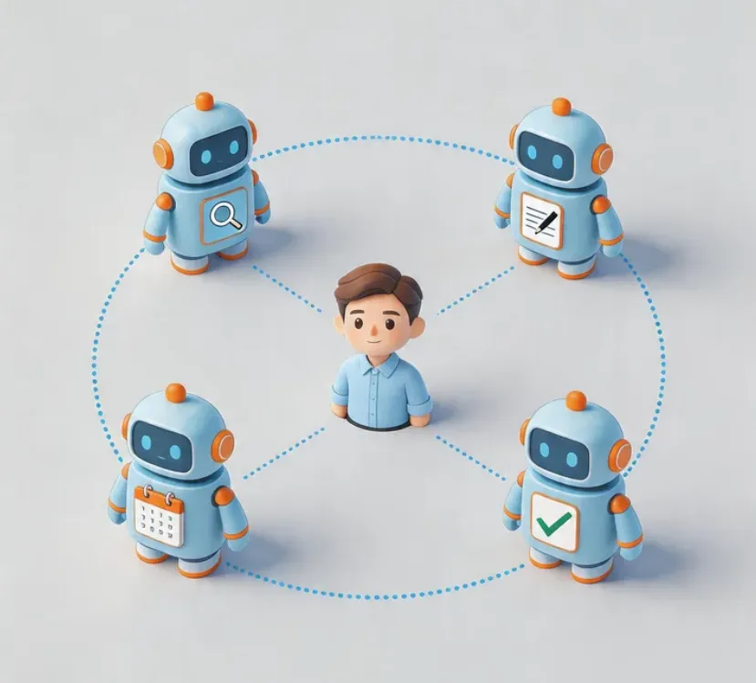 一个Agent,能聊天、能查资料、能写东西,比我强多了。但后来我发现一件事——不管这个Agent多聪明,它一次只能干一件事。就像你请了个超级全能的助理,但他只有一双手,写报告的时候就不能同时帮你回邮件。