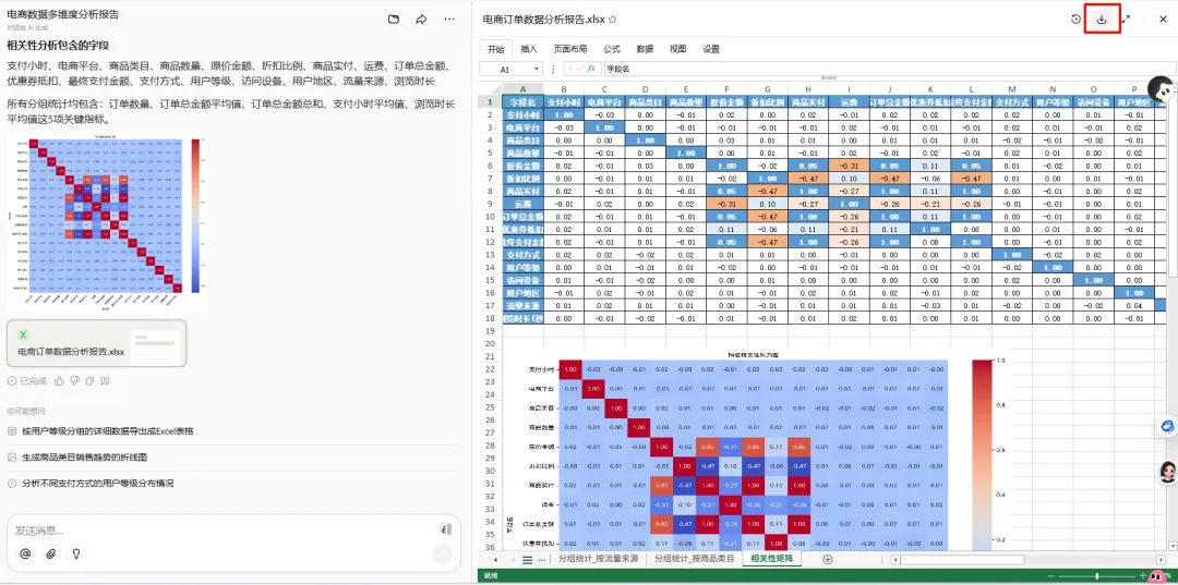这里举一个处理电商订单数据的实例,就4个步骤:上传原始数据文件、Say你的需求、等待、下载处理后的文件。