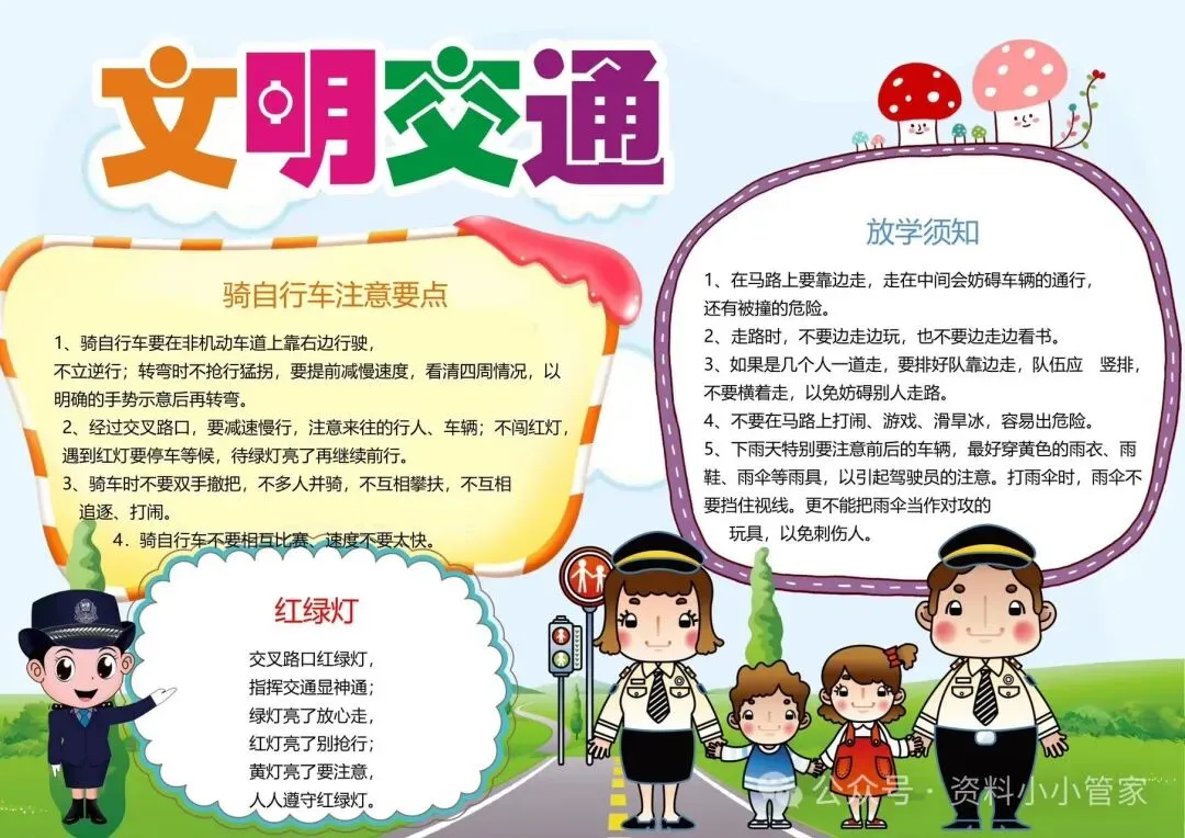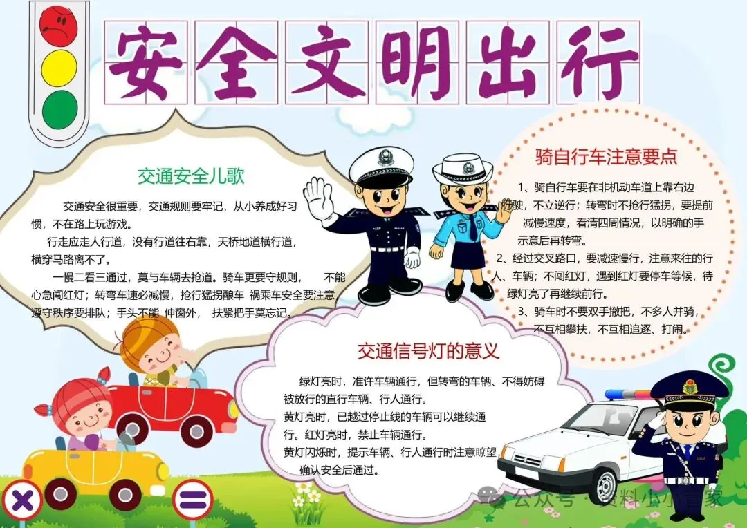 交通安全丨安全出行丨手抄报模板+线稿丨简单易画无水印交通安全,关乎你我,守护成长。为增强同学们的交通安全意识,养成文明出行的好习惯,筑牢校园安全防线,今天为大家整理了精美交通安全主题手抄报、暖心文案和绘画素材。简单易画,内容丰富,适合学生参考学习,快来一起看看吧~ 安全出行,从我做起;珍爱生命,文明相伴。以上就是本次交通安全手抄报分享内容,希望大家学以致用,规范出行。家校同心,守护成长,愿所有孩子向阳而行,平安长大!