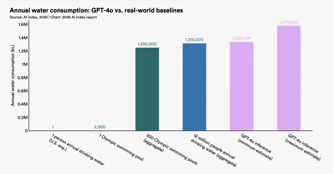 在北弗吉尼亚,电网不堪重负导致新数据中心被实质性叫停;GPT-4o一年的推理耗水,超过1200万人的饮用水需求。