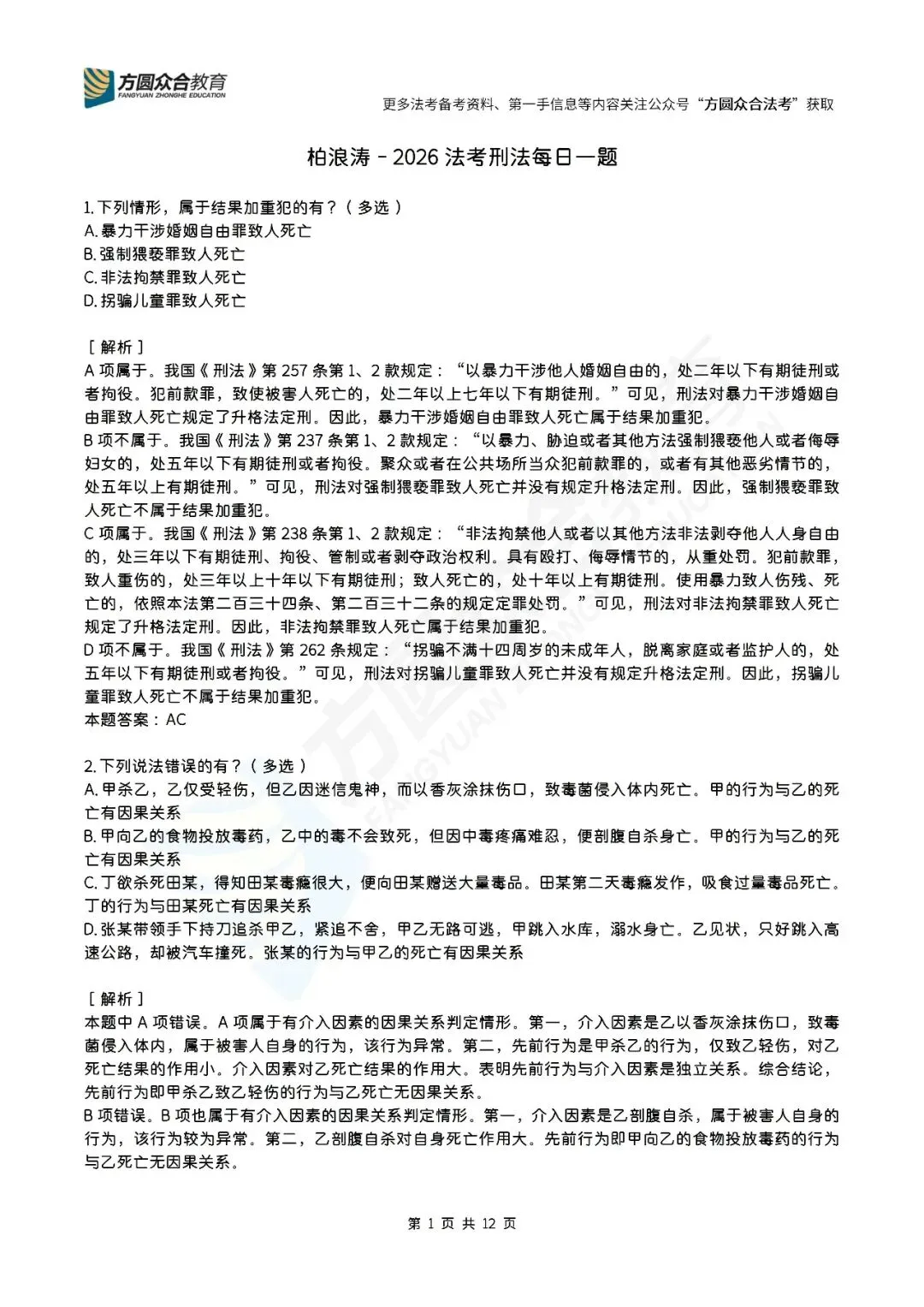 今天,合合菌菌带来了柏浪涛老师刑法每日一题(1-24题)备考干货的汇总。