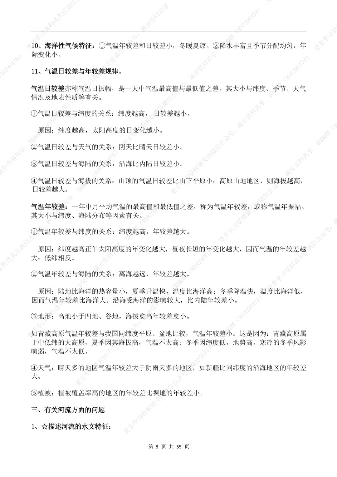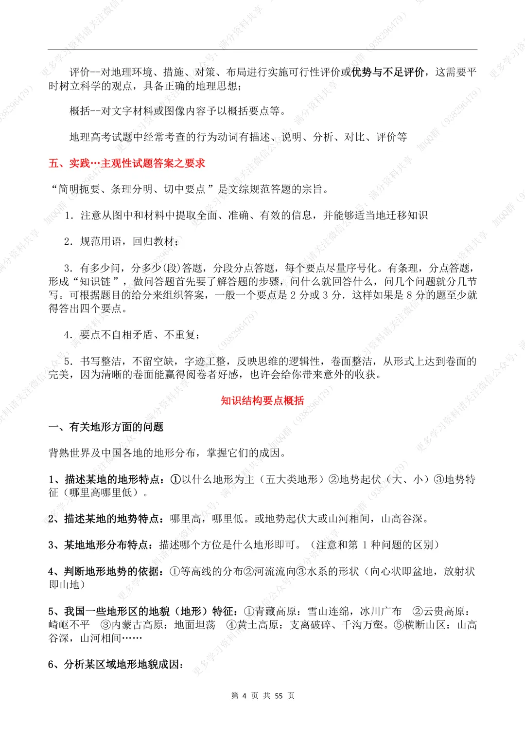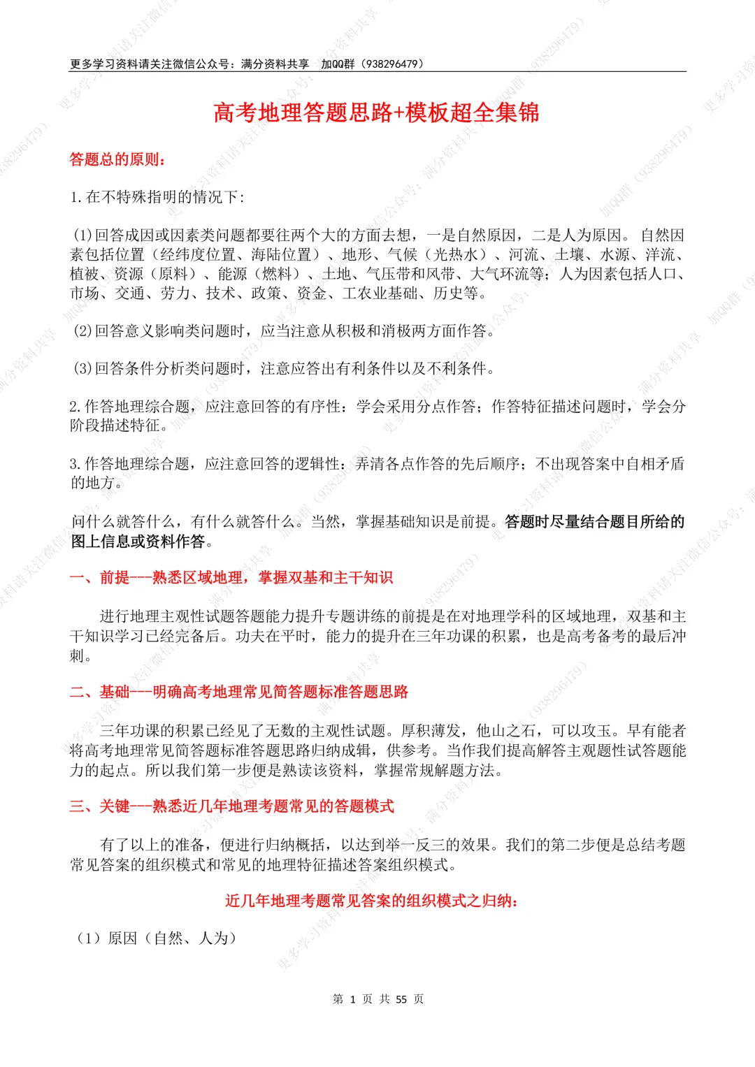 47.高中地理(新课标版)大题答题模板及必修123知识点总结(pdf分享)