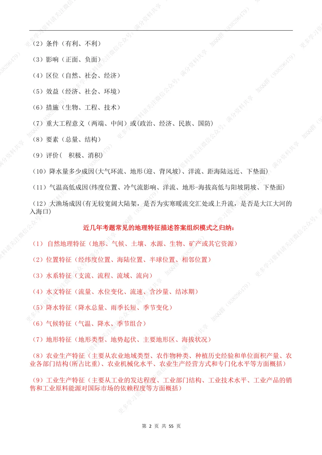62.【高中地理】高中地理答题模板地理大题万能答案,电子版可打印