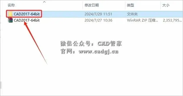 3.打开解压的【CAD2017-64bit】文件夹。