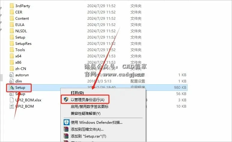 5.鼠标右击【setup】安装程序,选择【以管理员身份运行】。。