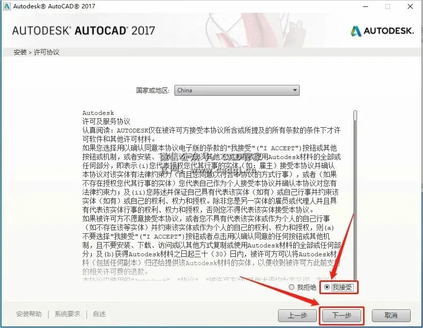 7.选择【我接受】,然后点击【下一步】。