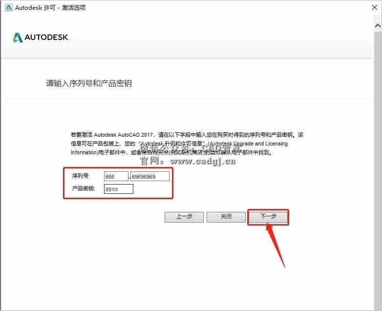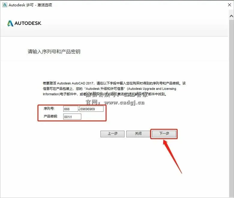 17.输入序列号:666-69696969,密钥:001i1,输入好后点击【下一步】。