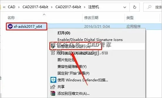 24.鼠标右击【xf-adsk2017_x64】注册机,选择【以管理员身份运行】。