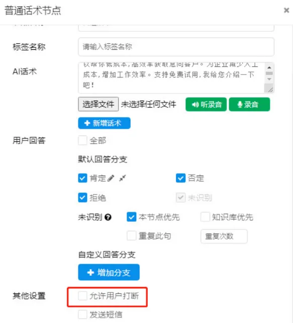 2、通话中断与转接:机器人支持在通话过程中打断,并进行自主学习,同时可以转接人工客服,确保不流失任何一个客户。