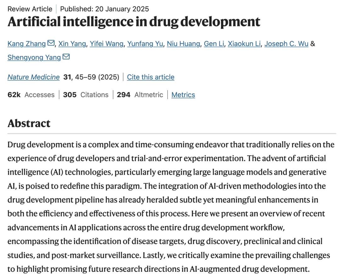 [2] Zhang, K., et al. (2025). Artificial intelligence in drug development. Nature Medicine.