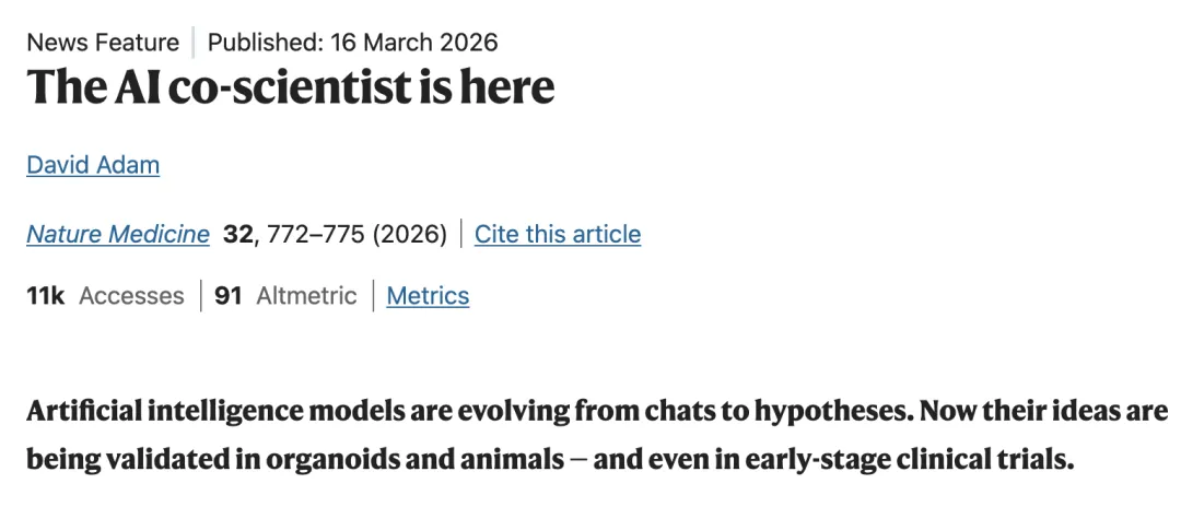 [3] Adam, D. (2026). The AI co-scientist is here. Nature Medicine.