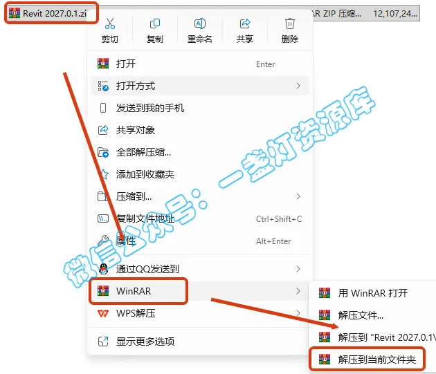1.右键下载的安装包,选择【解压到当前文件夹】