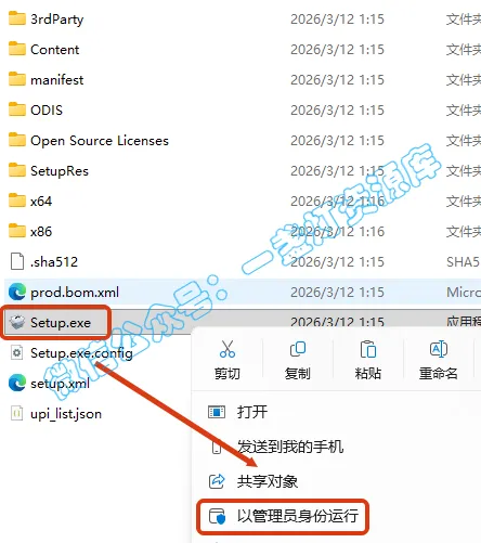 2.打开刚刚解压的文件夹,双击打开【Setup】文件夹,鼠标右键点击【Setup.exe】选择【以管理员身份运行】