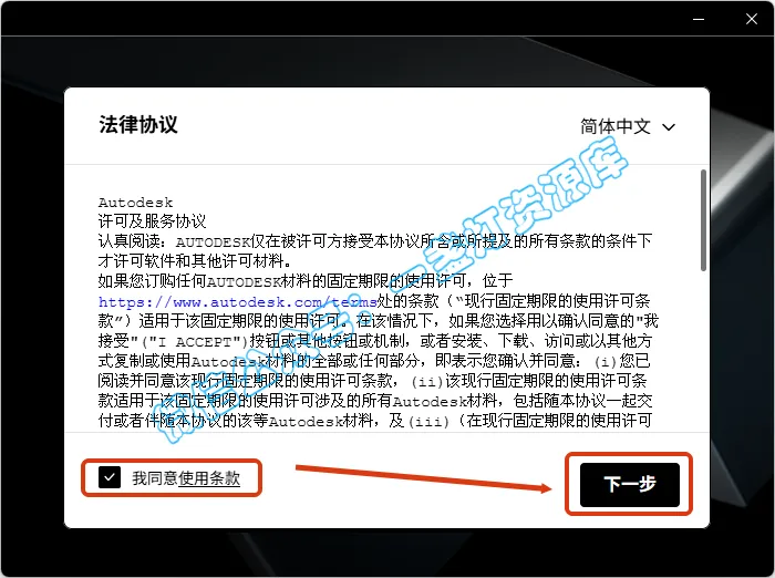 4.勾选【我同意...】,点击【下一步】
