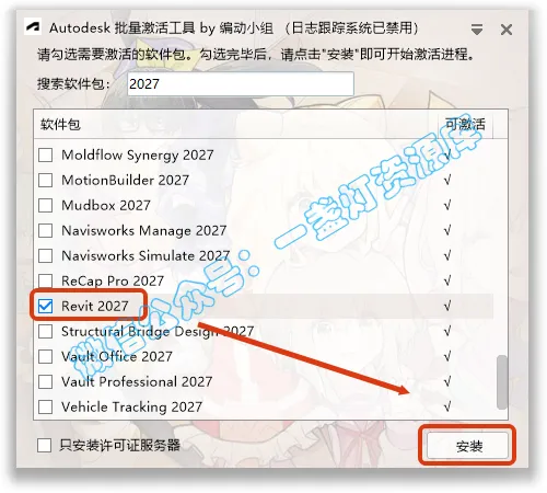 13.勾选【Revit 2027】,点击【安装】