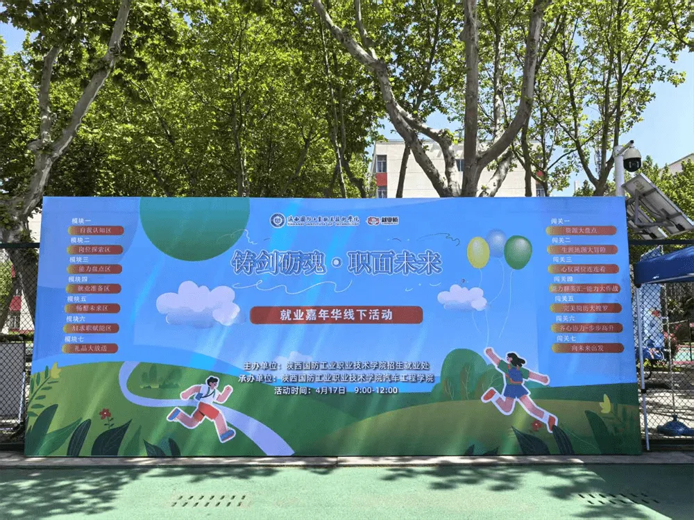 为深入落实国家关于促进高校毕业生高质量充分就业的决策部署,切实提升高职学子的职业生涯规划意识与就业核心竞争力,4月17日,一场以“铸剑砺魂·职面未来”为主题的大型就业嘉年华线下活动在陕西国防工业职业技术学院北校区田径场火热举行。作为该校就业指导服务工作的年度重头戏,本次活动由学校就业指导服务中心统筹主办,汽车工程学院协办,通过沉浸式、闯关式、智能化的生涯探索体验,为广大学子搭建起一个连接自我、对接职场、规划未来的综合性实践平台。