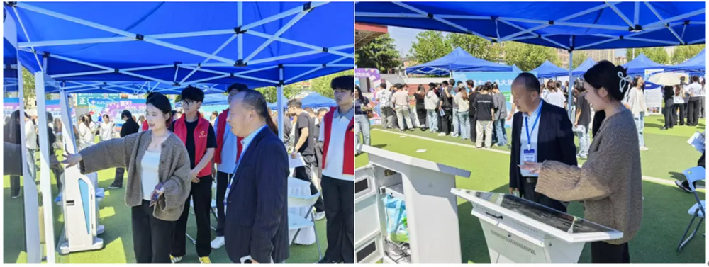 作为本次活动的一大亮点,AI求职赋能区吸引了大量学生驻足体验。该区域集中展示了人工智能生涯探索一体机、就业赋能一体机、简历优化一体机以及落地式AI面试一体机等前沿科技设备。同学们通过智能测评、模拟面试、简历诊断等实操环节,直观感知真实求职场景,精准发现自身能力与目标岗位之间的差距。一位来自智能制造学院的二年级学生表示:“AI面试官给出的反馈非常具体,让我清楚看到自己在表达逻辑和专业知识应用上的不足,这对接下来的针对性提升很有帮助。”