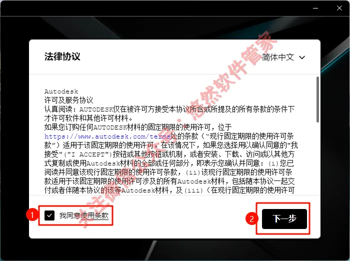 5.勾选【我同意使用条款】,然后点击下一步