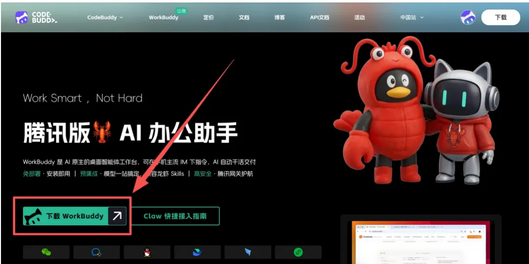 简单来说:你只需用一句话描述需求,WorkBuddy 就像一位资深同事,自动拆解任务、规划步骤、执行操作,最终将可交付的成果放到你面前。WorkBuddy 被誉为"腾讯版小龙虾(OpenClaw)",无需部署服务器、无需写代码,下载安装即可使用,真正做到开箱即用。