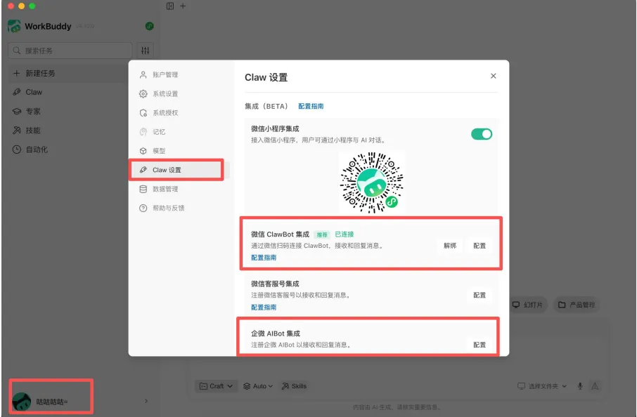 3、绑定微信/企微账号,方便通过微信下达操作指令,远程控制电脑