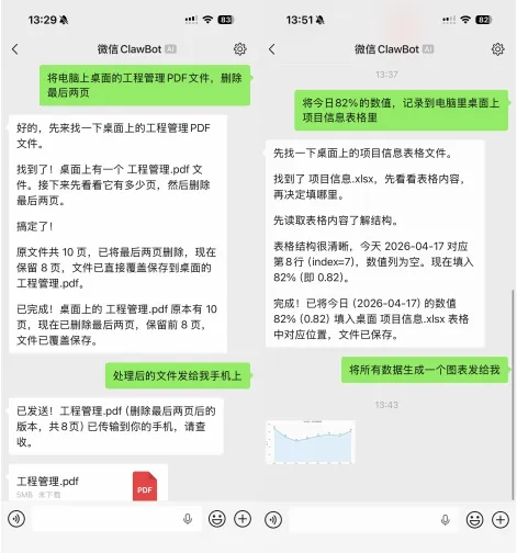 1、通过手机微信自动远程操作电脑,处理数据信息,生成图表,传输文件等