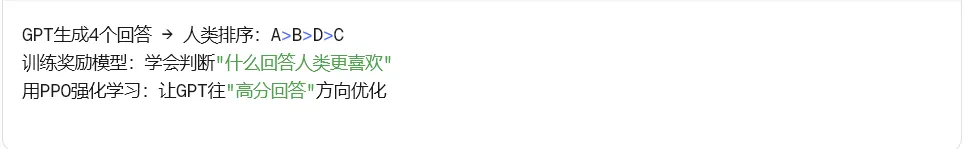 解决: 让GPT生成多个答案,人类打分排序,训练一个"奖励模型",再用强化学习优化GPT