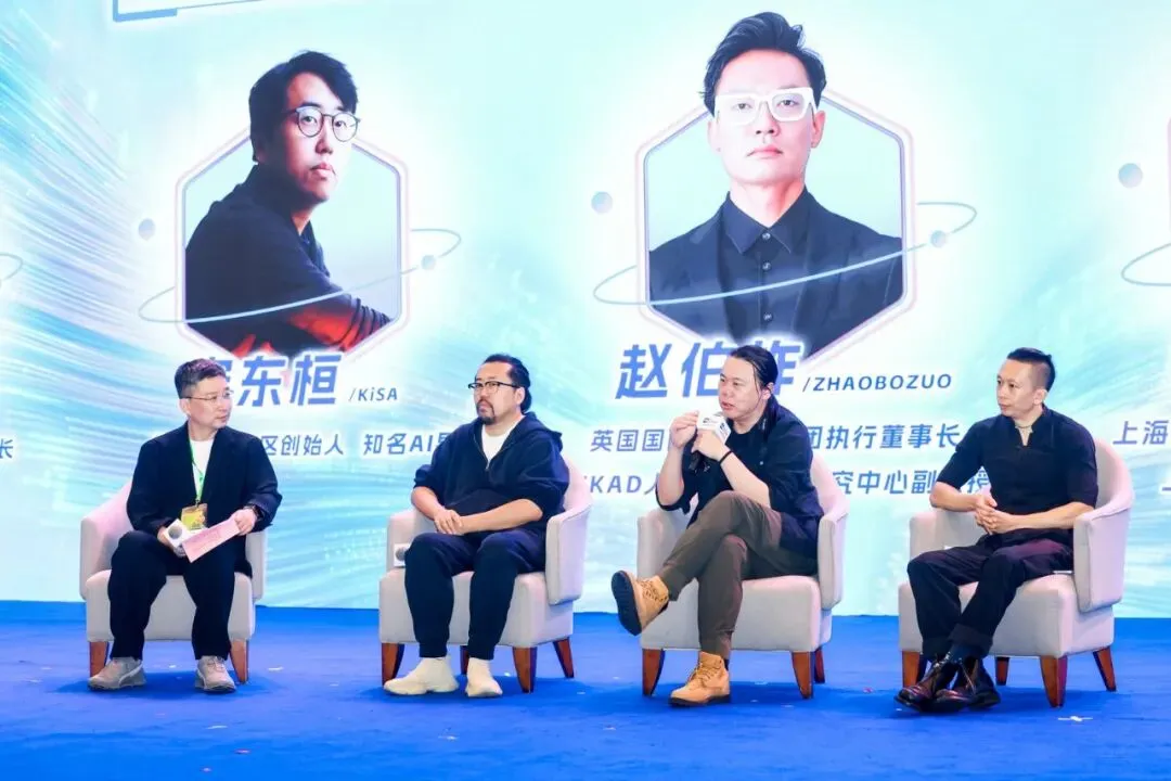 第二场圆桌由中国传媒大学教授、数字人研究院院长吕欣主持,聚焦“生产力新物种‘AI超创’”话题。宋东桓将“AI超创”定义为“超在思想,创在表达”,认为AI真正解放的是个体思想抵达大众的路径与成本。上海视觉艺术学院副教授印隽则提醒行业警惕技术焦虑下的价值迷失,强调好故事来自创作者对历史与文化的内化领悟。艺术IP策划人、戴泽艺术基金主任戴孟则从经典艺术视角出发,认为传统艺术与AI的碰撞并非对立,而是一场跨时空的共创。