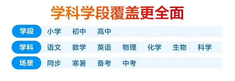 • 全场景:同步、备考、中考、寒假、暑假