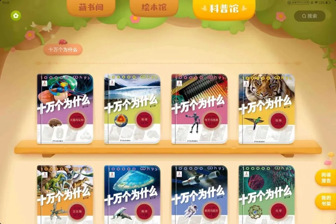 绘本馆汇聚全球大师大奖绘本,科普馆收录《十万个为什么》全套读物,藏书阁整理中小学生经典阅读书目,讯飞书城内有2000+本精品图书,满足孩子各类阅读需求。