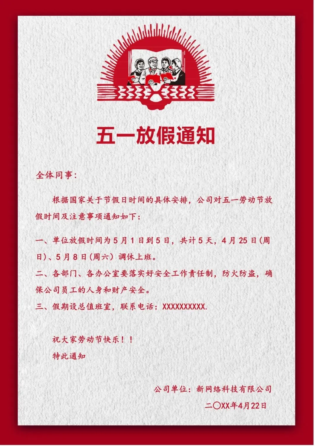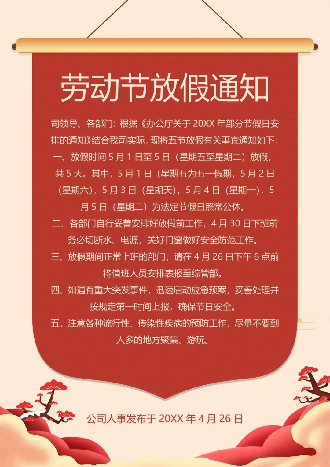 本文分享的是36款五一劳动节放假通知模板(免费领取)