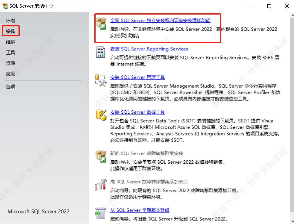 4.点击【安装】,点击【全新SQL Server……】。