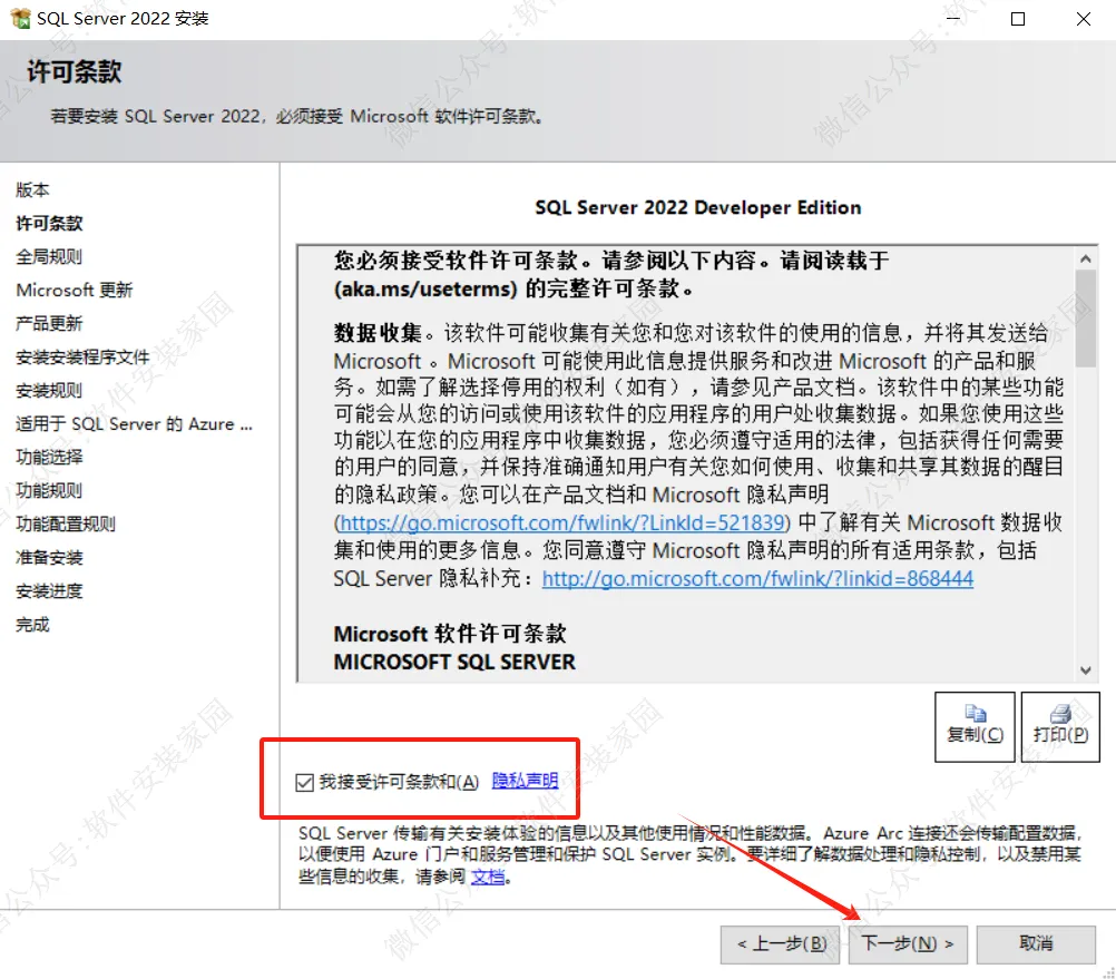 6.勾选【我接受许可条款】,点击【下一步】。