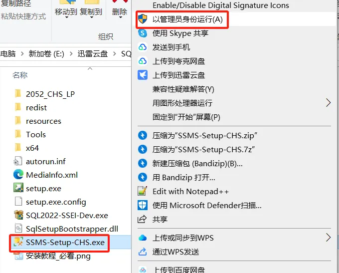 18.返回解压后的安装包,鼠标右击【SSMS-Setup-CHS】选择【以管理员身份运行】。