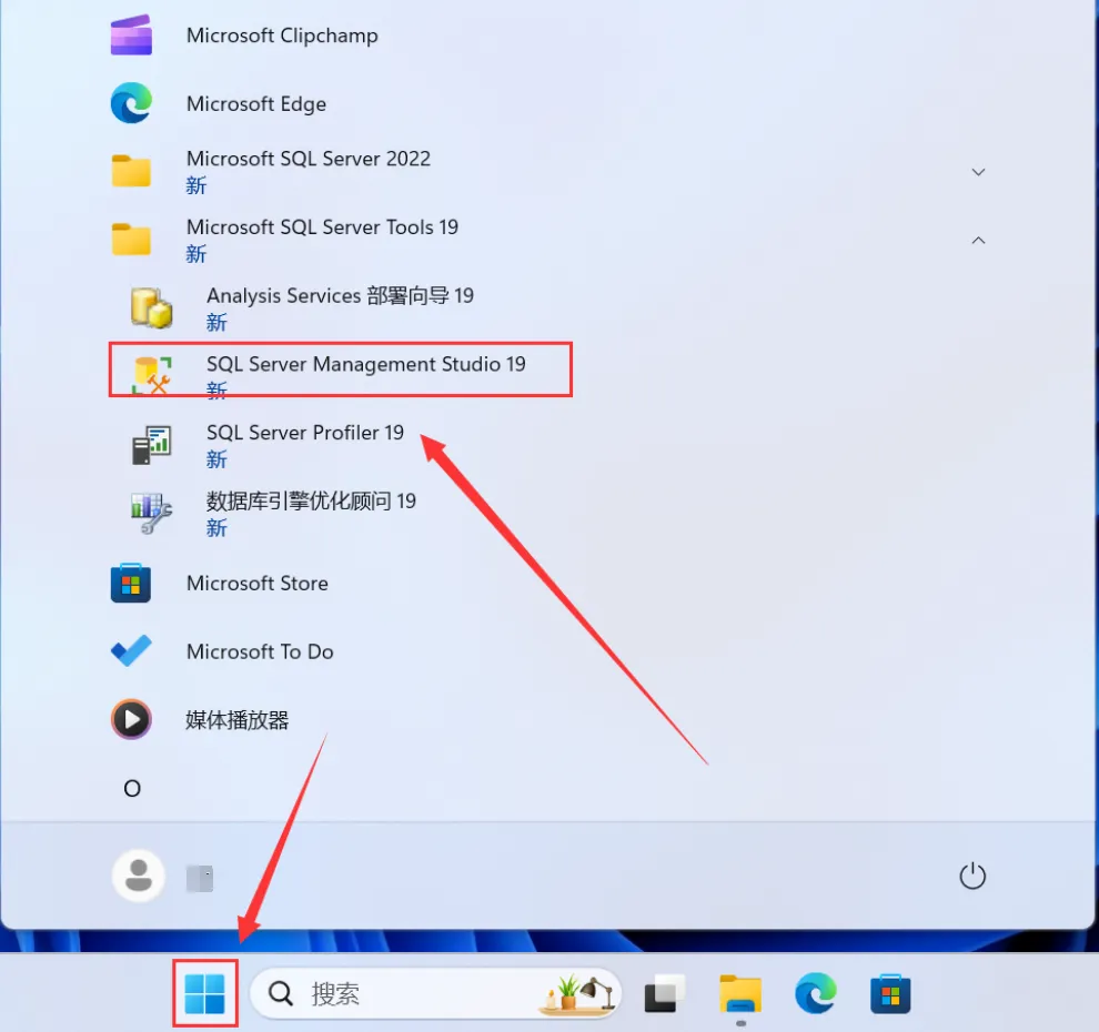 22.点击桌面任务栏中的【开始图标】>点击【所有应用】>双击展开【Microsft SQL......】文件夹,双击【SQL Server……】启动软件(拖到电脑桌面可创建启动快捷方式)。