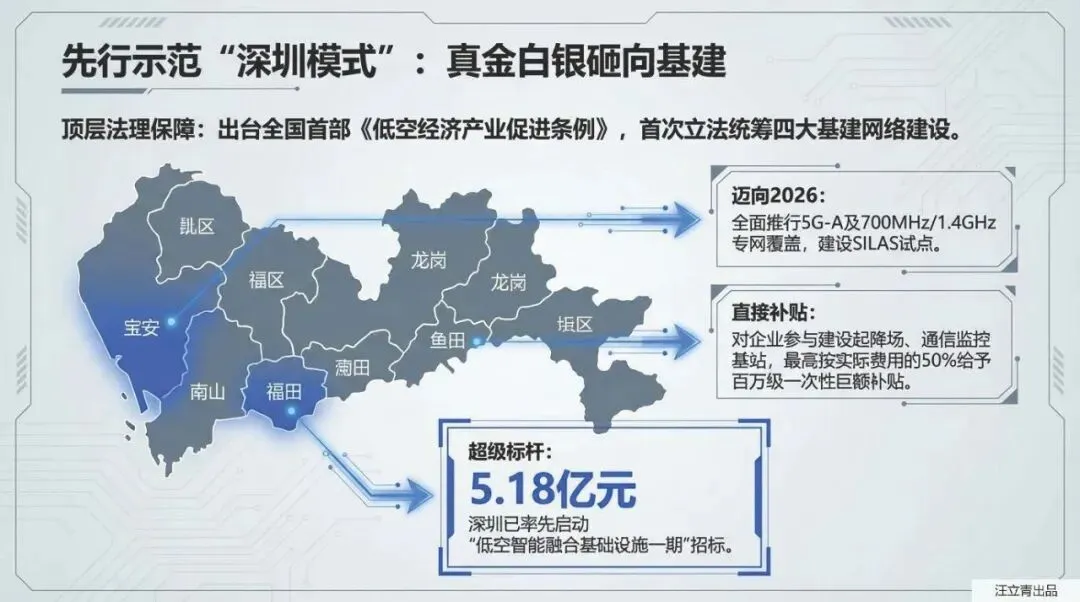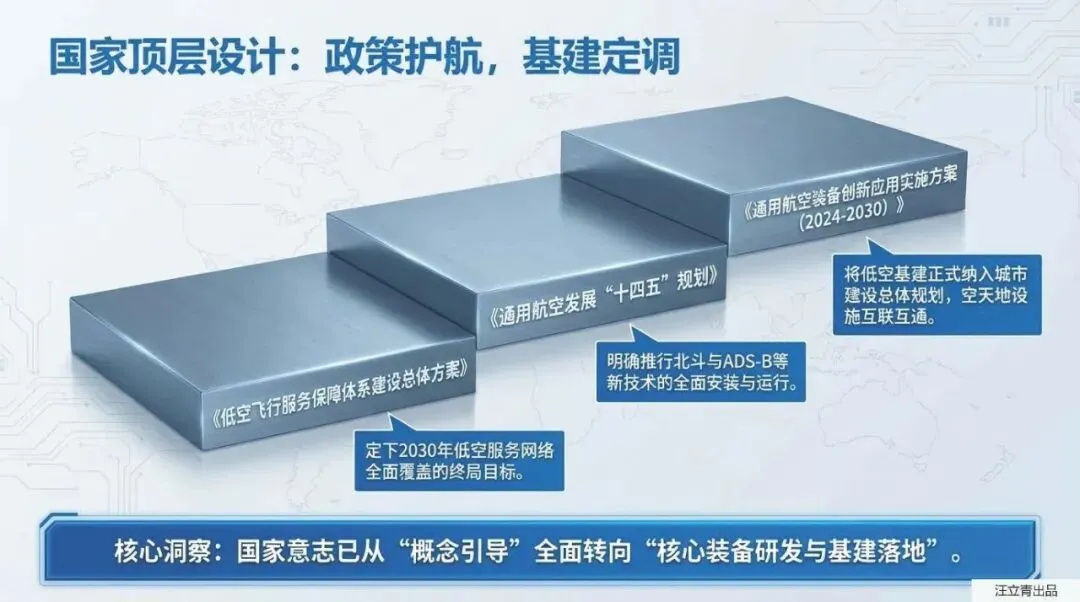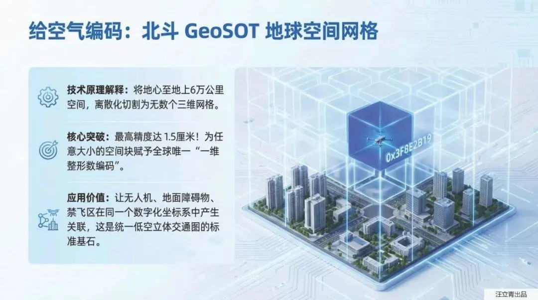 华为在深圳的实测数据显示,该技术已实现10米级无人机非法入侵100%精准探测与轨迹跟踪 。 北斗GeoSOT空间网格: 给空气编码 。将地心至地上6万公里空间离散切分为无数三维网格,最高精度达1.5厘米,为低空障碍物和禁飞区建立统一的数字化坐标系 。 第三,顶层下场,真金白银砸向“数字化基建”。 国家意志已从“概念引导”全面转向“核心装备研发与基建落地” 。