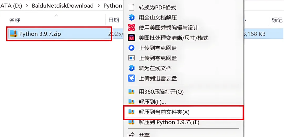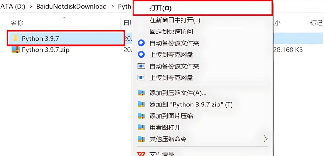 1.打开下载的Python 3.9.7软件安装包,鼠标右击压缩包选择【解压到Python 3.9.7\(E)】。