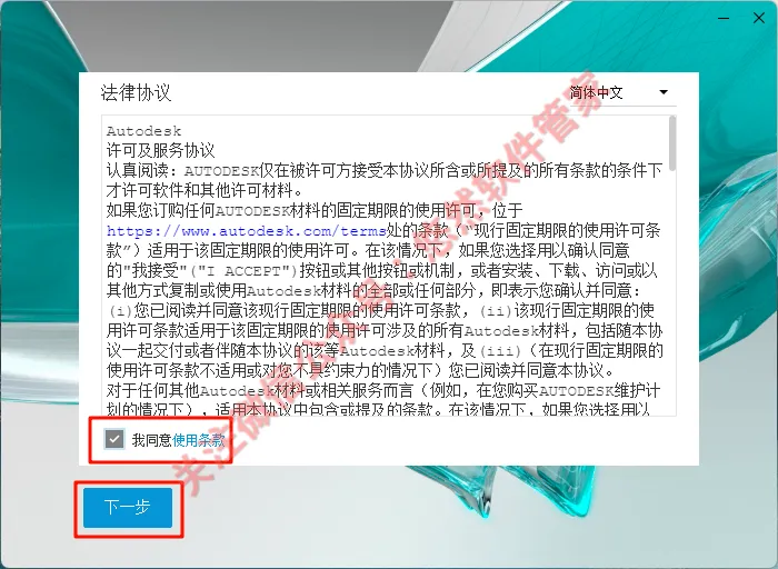 5.勾选【我同意使用条款】,然后点击【下一步】
