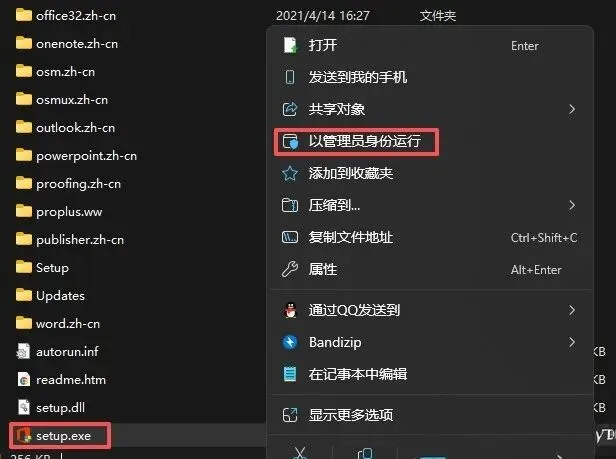 打开文件夹,往下翻选中【setup.exe】程序,鼠标右键【以管理员身份运行】