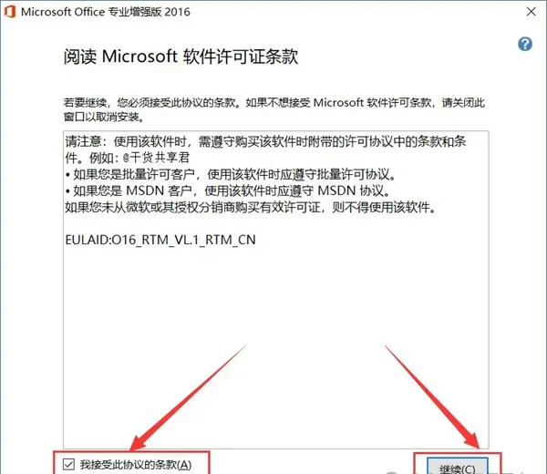 2、左边勾选接受,点继续