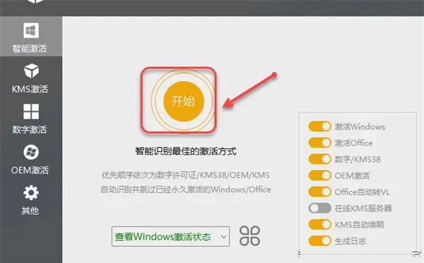 6、在激活工具里,选择【智能激活】,再点击【开始】