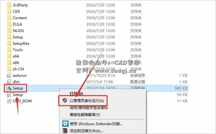 5.鼠标右击【setup】安装程序,选择【以管理员身份运行】。