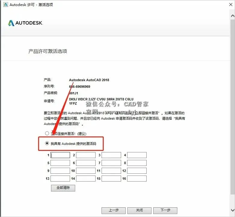 30.全部选中Activeation中生成的激活码(仔细检查是否复制完整),使用快捷键Ctrl+C或者鼠标右击复制生成的激活码,然后使用快捷键Ctrl+V粘贴激活码至激活码方框中,最后点击【下一步】。