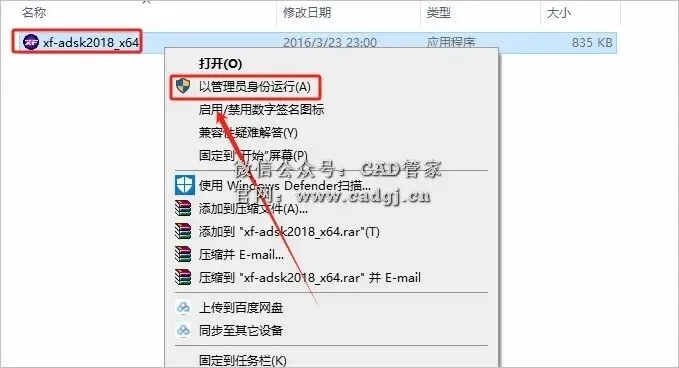 25.鼠标右击【xf-adsk2018_x64】注册机,选择【以管理员身份运行】。