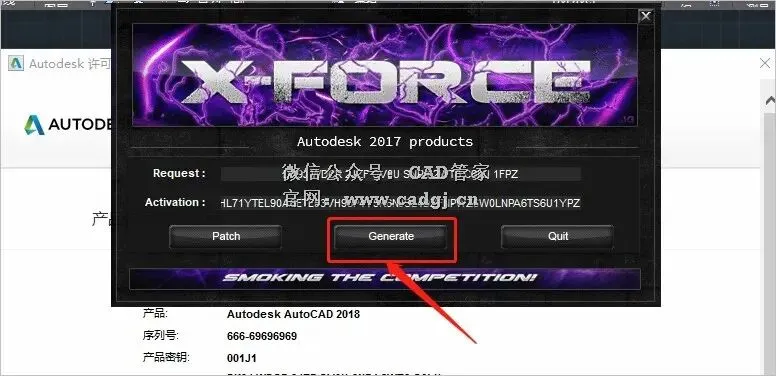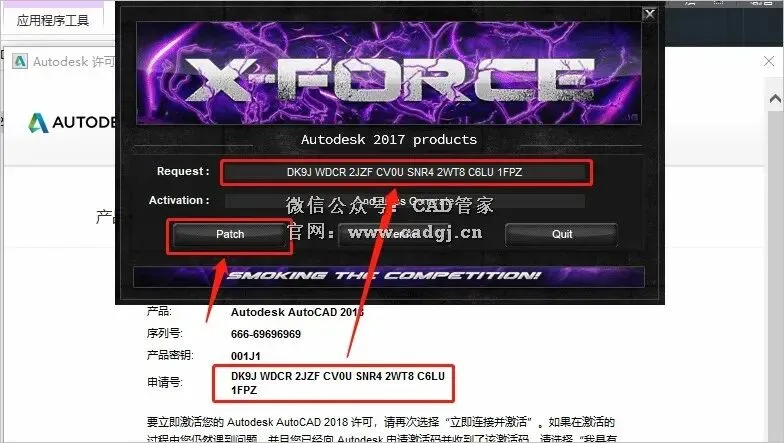 27.使用快捷键Ctrl+C复制申请号,然后使用激活码(仔细检查是否复制完整),使用快捷键Ctrl+V粘贴到注册机里面的Request中(记得删除原Request中的内容),然后点击【Path】。