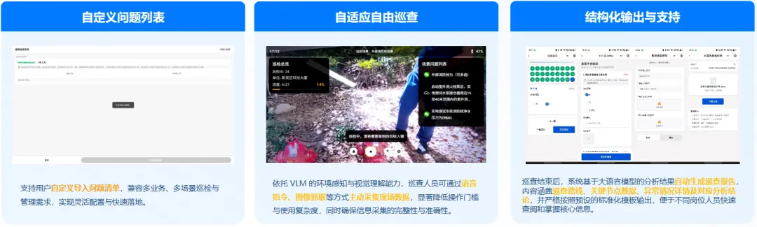 自适应自由巡查:VLM环境感知,语音/图像一键采集,降低操作门槛。